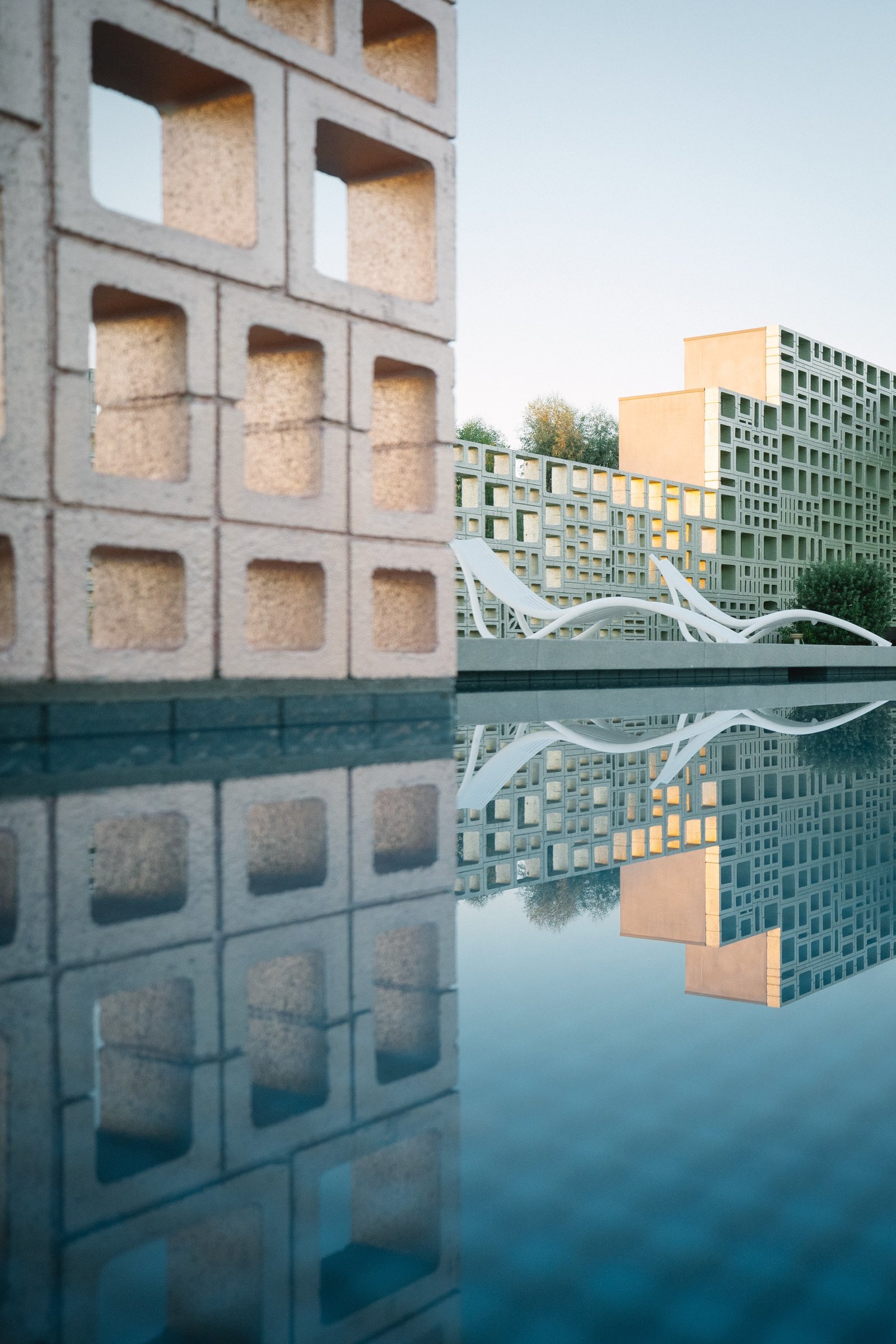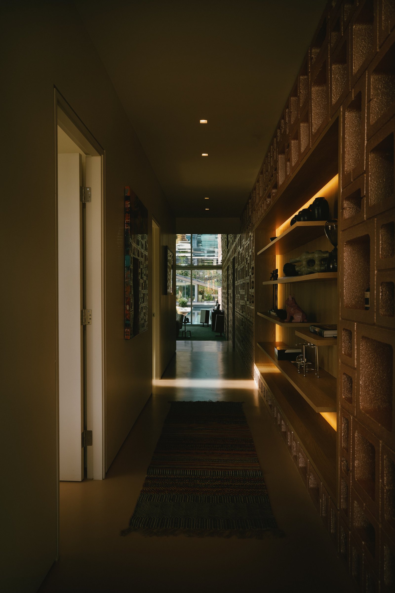 Your primary suite opens to a private patio with plunge pool and roof opening that frames the night sky - float under stars in complete privacy. The en-suite bathroom features double vanities, marble counters, tile shower, and bidet. Kelly green tile separates bedroom from bath, bold and unapologetic. Walk-in closets with dressing areas provide ample storage. The guest bedrooms, both with en-suites and expansive glass feel like mini-primaries.